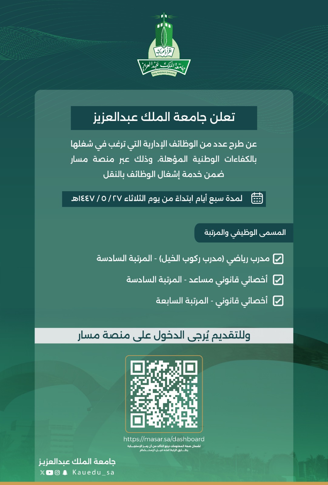 - أكاديميون وظائف جامعة الملك عبد العزيز