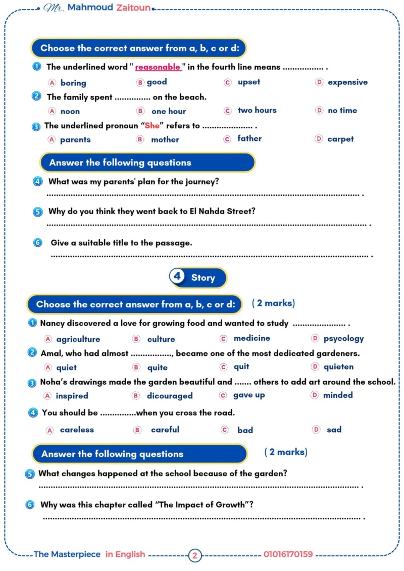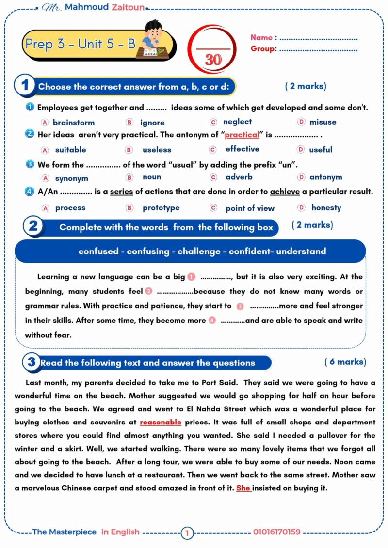 مراجعات نهائية.. امتحان عن الوحدة الخامسة لغة انجليزية لـ الثانوية العامة 2026