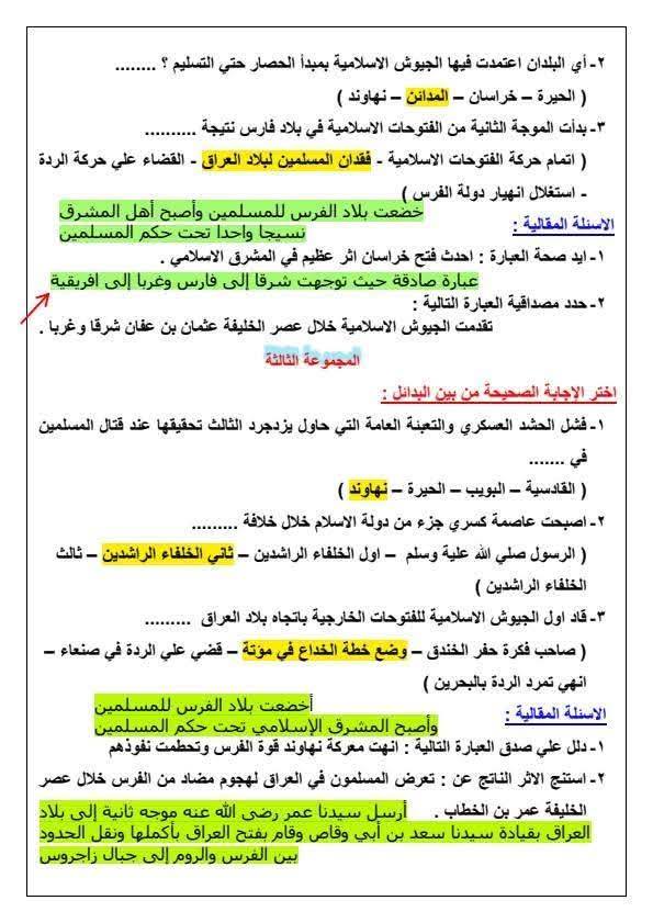 - مراجعات نهائيه امتحان التاريخ ثانية ثانوي