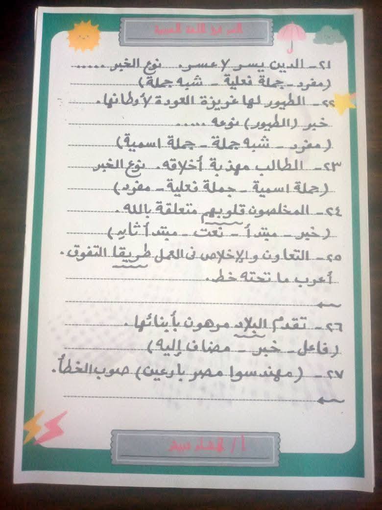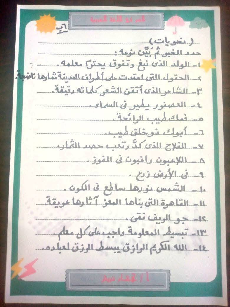 - مراجعات نهائيه امتحان اللغة العربية سادسة ابتدائي