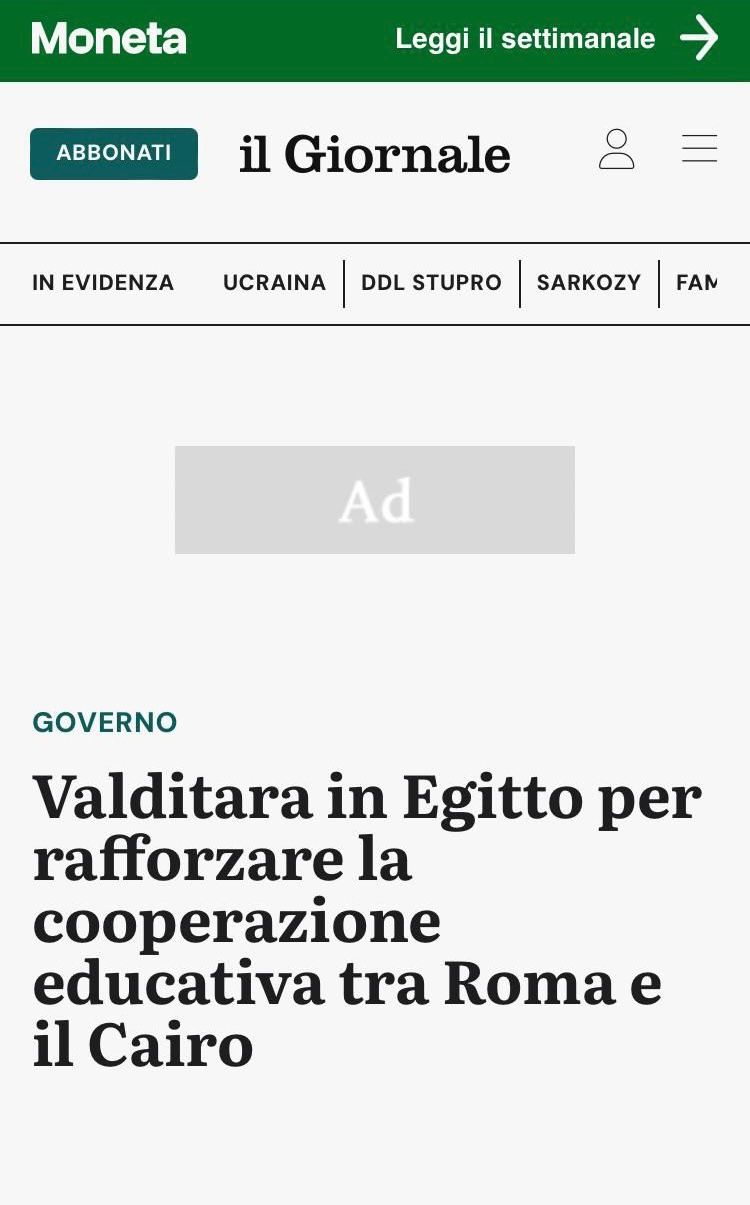 وفي سياق متصل، أبرز موقع Resegone Online Varese InLuce البعد المؤسسي للزيارة، حيث تناول تفاصيل لقاءات الوزير الإيطالي جوزيبي فالدتارا مع الدكتور مصطفى مدبولي رئيس مجلس الوزراء، والدكتور محمد عبد اللطيف وزير التربية والتعليم والتعليم الفني، إلى جانب عدد من الوزراء والمسؤولين.
