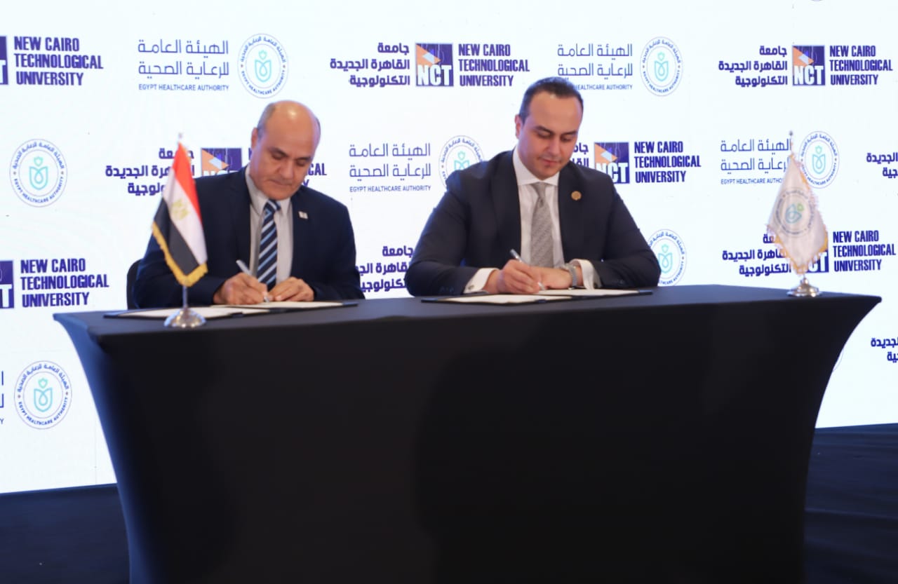 وحضر مراسم التوقيع كل من الدكتور طارق عبدالملاك، رئيس جامعة القاهرة الجديدة التكنولوجية، والدكتور أحمد السبكي، رئيس الهيئة العامة للرعاية الصحية، إلى جانب الدكتور محمد السودة، عميد كلية العلوم الصحية التطبيقية.