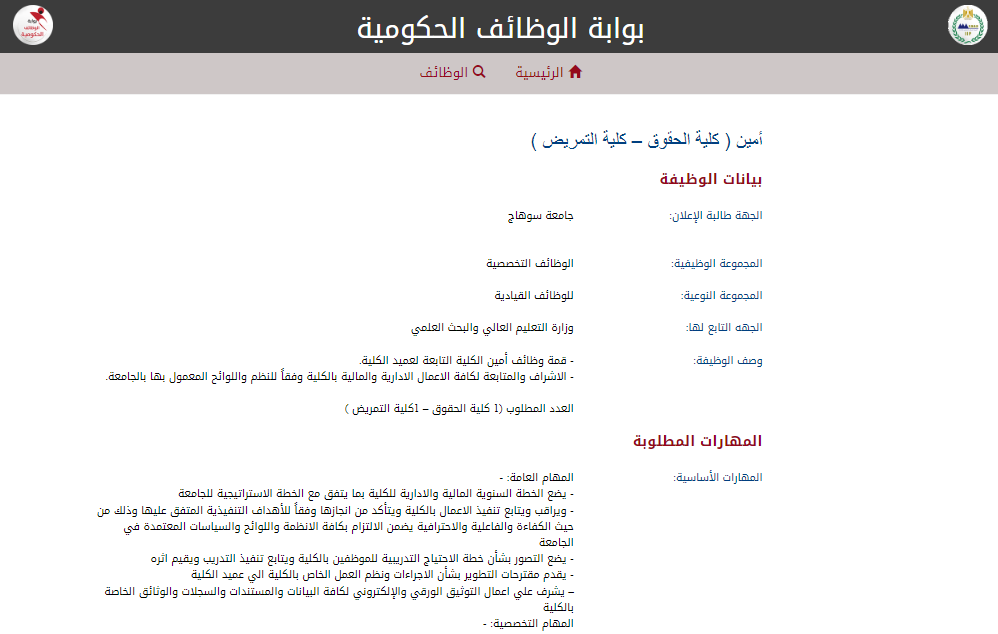 وظيفة جامعة.. أعلنت جامعة سوهاج عن فتح باب التقديم لشغل وظيفة أمين كلية الحقوق وأمين كلية التمريض، ضمن المجموعة النوعية للوظائف القيادية التابعة لوزارة التعليم العالي والبحث العلمي.