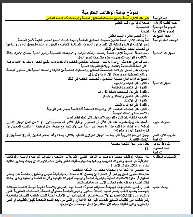 - وظائف الجامعات الحكومية