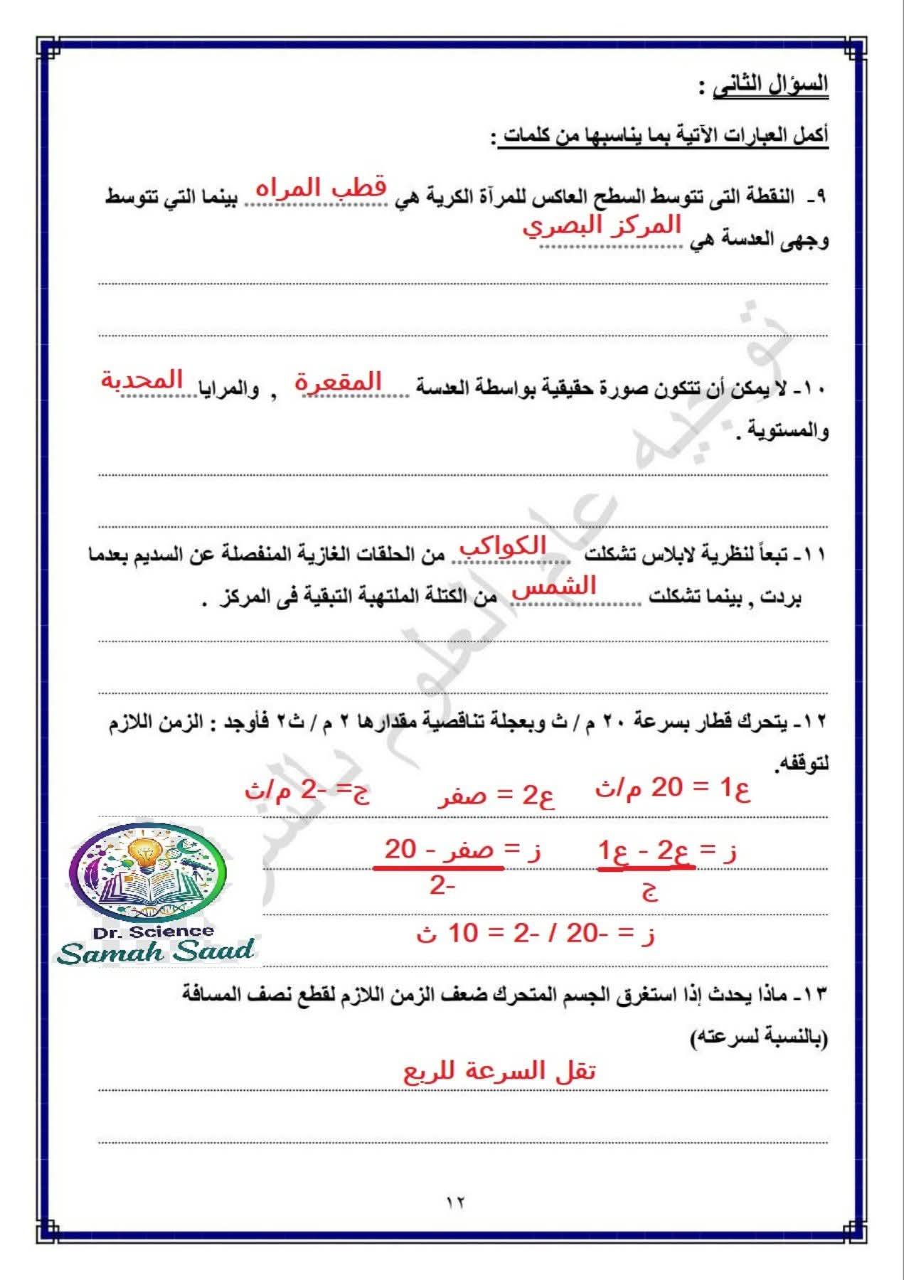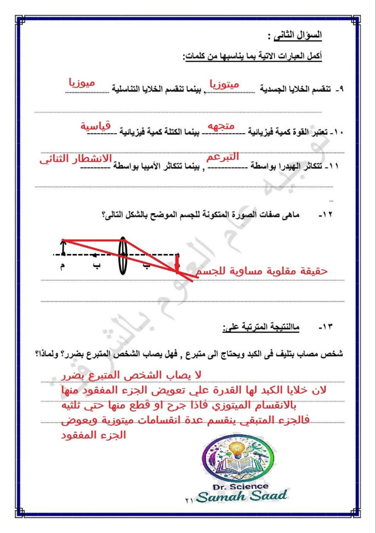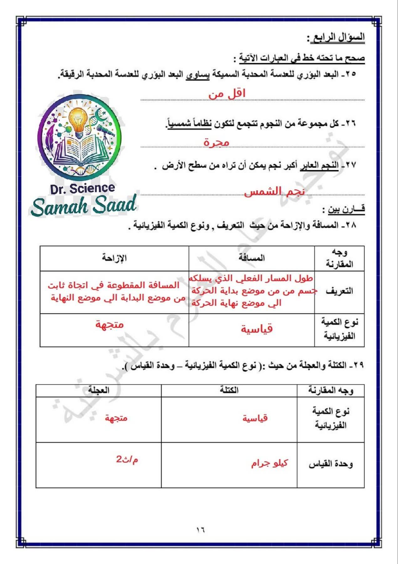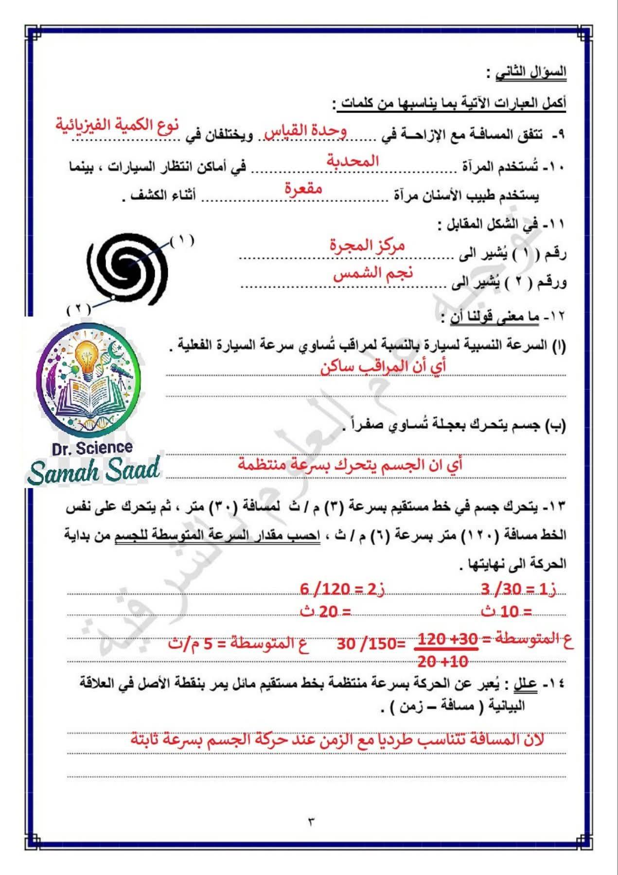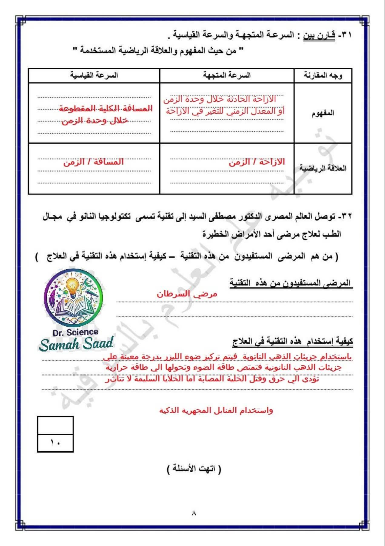 أقوى مراجعة في ليلة امتحان مادة العلوم