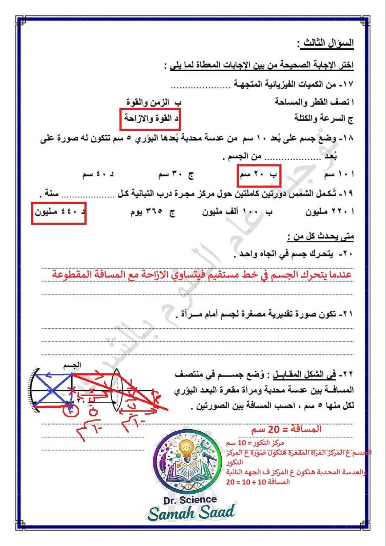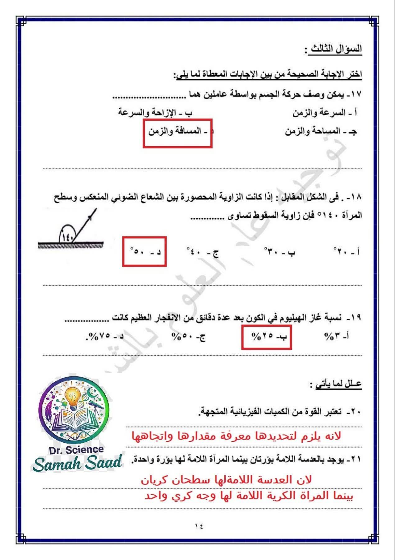 - مراجعات نهائيه اجابة 3 نماذج في العلوم ثالثة إعدادي