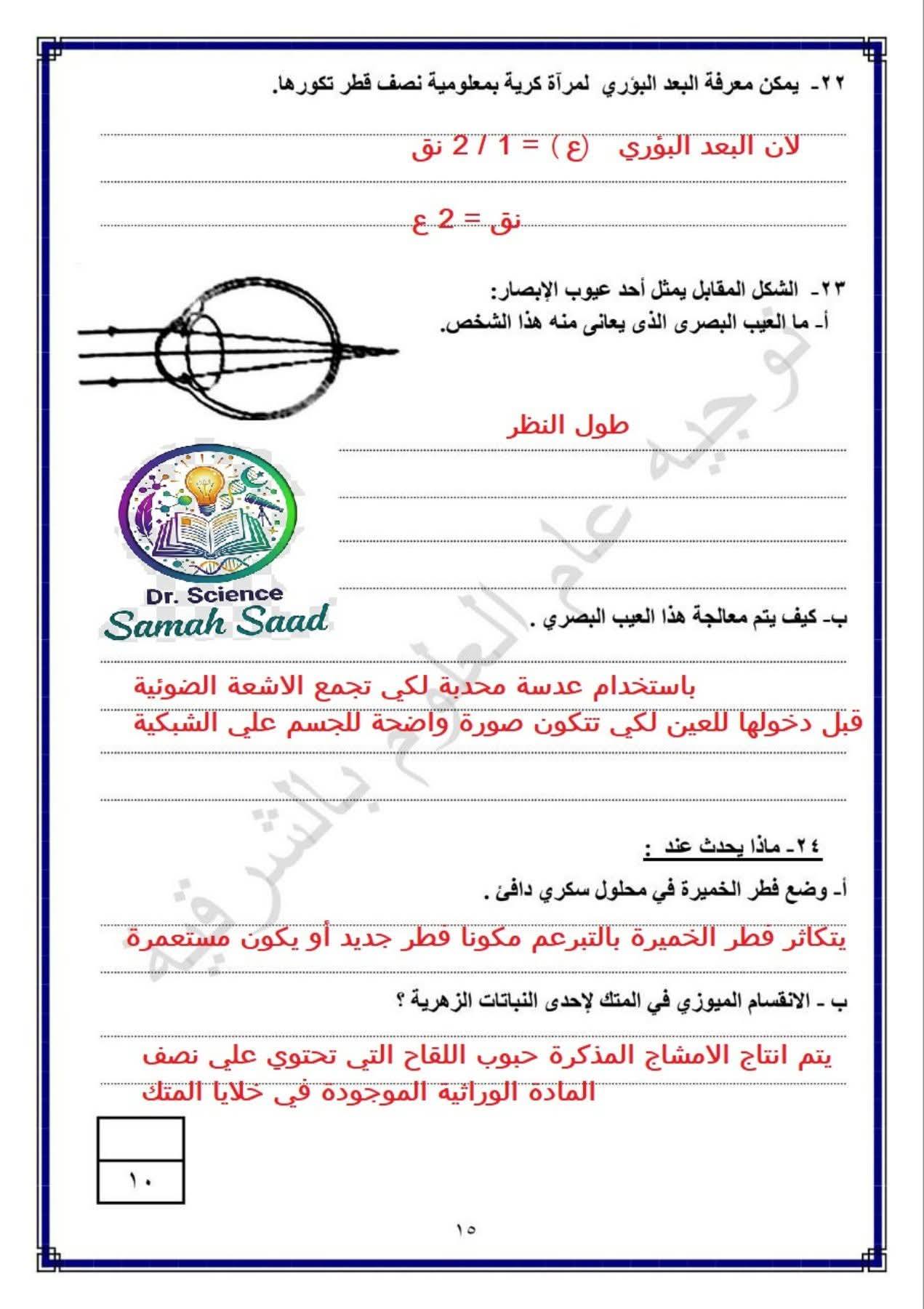 - العلوم مراجعات نهائية الصف الثالث الإعدادي