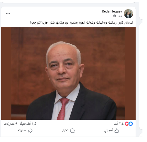الدكتور رضا حجازي عبّر عن امتنانه لهذا التفاعل الكبير من خلال منشور قال فيه: