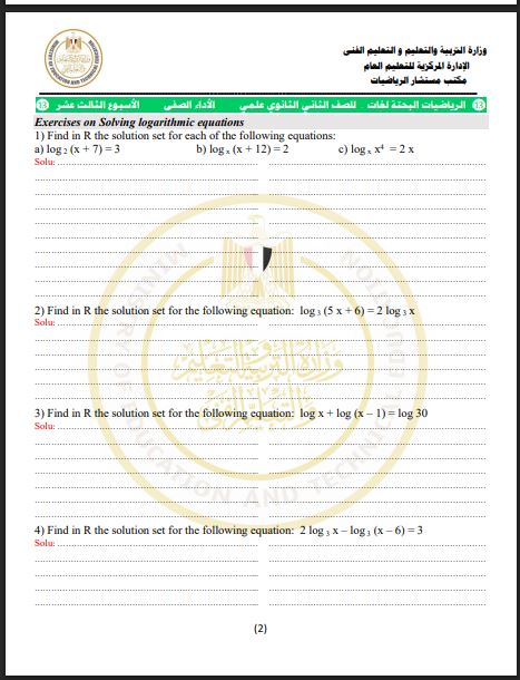 - التقييم الاسبوعي للصف الثاني الثانوي الرياضيات البحتة لغات
