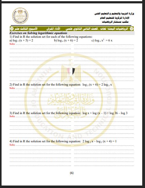 مراجعات نهائية أسئلة تقييم الأسبوع الـ 13 الرياضيات البحتة لغات