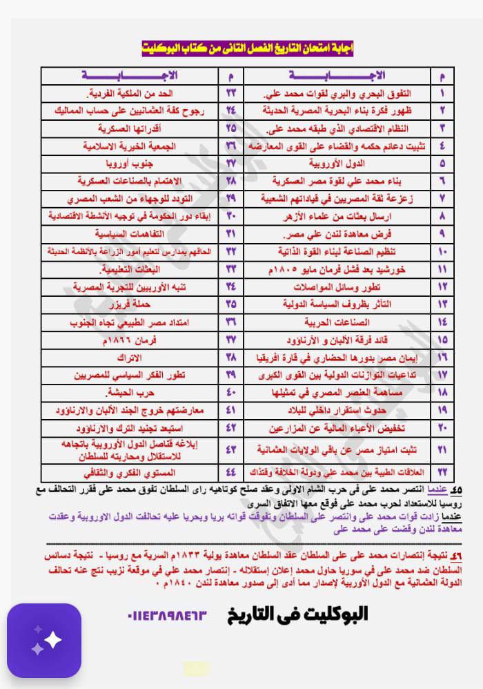 46 سؤالا وإجابتها في التاريخ لـ الثانوية العامة 2026