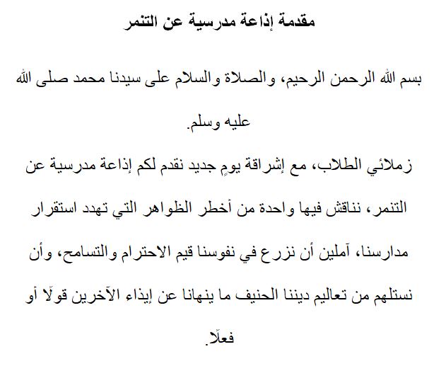 - إذاعة مدرسية عن التنمر كاملة الفقرات