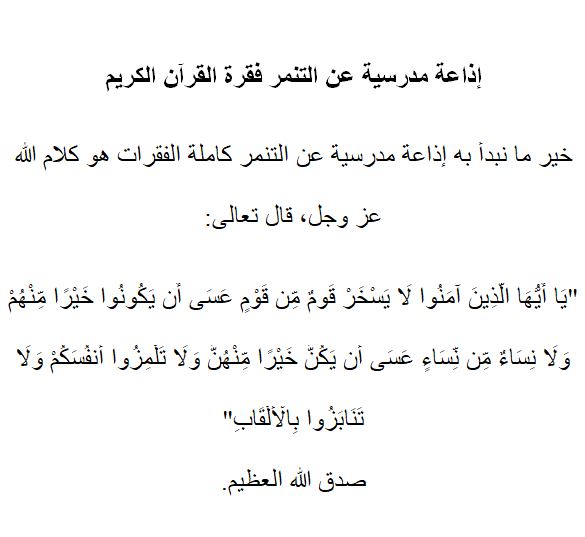 إذاعة مدرسية عن التنمر فقرة القرآن الكريم