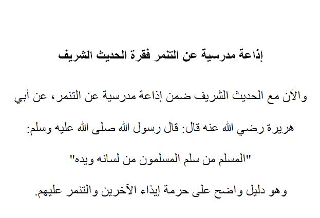 إذاعة مدرسية عن التنمر فقرة الحديث الشريف