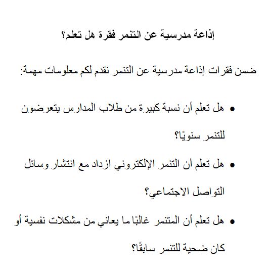 إذاعة مدرسية عن التنمر فقرة هل تعلم؟
