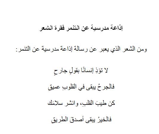 إذاعة مدرسية عن التنمر فقرة الشعر