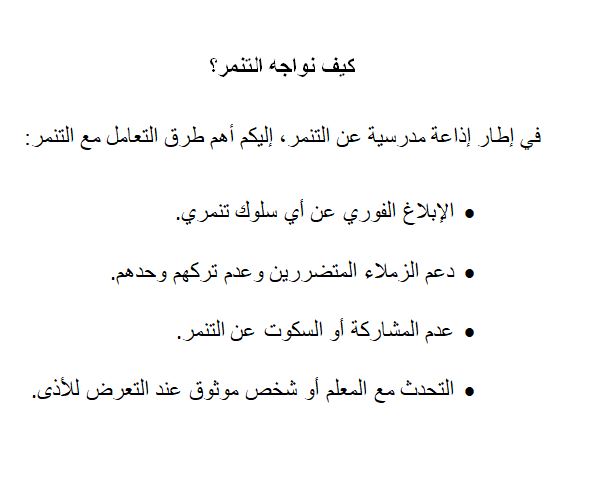 - الإبلاغ الفوري عن أي سلوك تنمري.