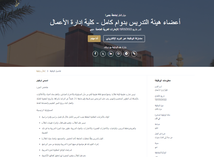 متطلبات التقديم على وظائف جامعة جميرا