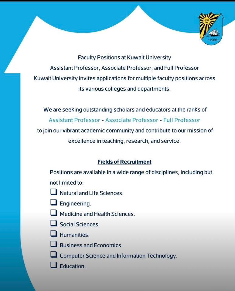 - أعضاء هيئة التدريس وظائف جامعة الكويتفرص عمل جامعة الكويت