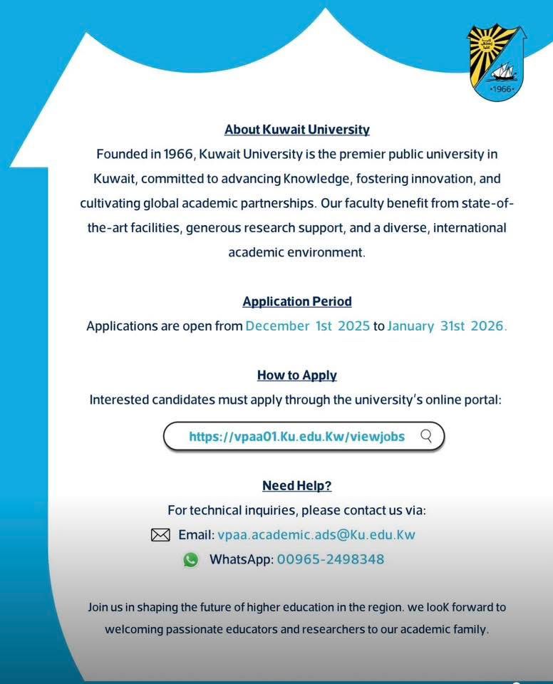 - شروط التقديم لوظائف أكاديمية في الكويت