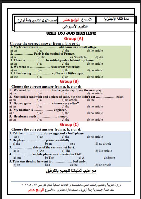 أسئلة تقييمات الأسبوع الـ 14.. وتحميل أقوى اسئلة تقييم اللغة الإنجليزية في الأسبوع الـ 14، تضمن لك دخول الامتحان وهو في جيبك، لطلاب وطالبات الصف الأول الثانوي، من خلال امتحانات مادة اللغة الإنجليزية، تضمن لك مراجعات نهائية في منهج الفصل الدراسي الثاني، والتى تعد مرجعا أساسيا في مراجعات نهائية، لمقرر المنهج الدراسي للعام الدراسي الجاري 2025-2026، أعدها خبراء المادة في وزارة التربية والتعليم، من أجل مراجعات نهائيه لطلاب الصف الأول الثانوي، وللدخول على رابط التقييم الأسبوع الـ 14 في مادة اللغة الإنجليزية من خلال هذا الرابط.. اضغط هنااااااااااااا.