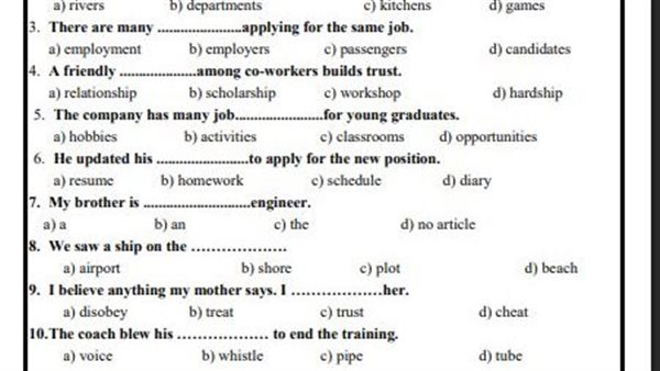 أسئلة تقييمات الأسبوع الـ 14.. أسئلة تقييم الأسبوع الـ 14 اللغة الإنجليزية الصف الأول الثانوي، للعام الدراسي الجاري 2025-2026، في مراجعات نهائية وتحميل أسئلة تقييم الأسبوع الـ 14 اللغة الإنجليزية الصف الأول الثانوي، حيث يواصل موقع السبورة نشر مراجعة ليلة الامتحان من خلال تحميل أقوى أسئلة تقييم الأسبوع الـ 14 الانجليزية، لطلاب وطالبات الصف الأول الثانوي، من خلال مراجعات نهائيه، واستعراض جميع نظام أسئلة امتحانات اللغة الإنجليزية، وشرح مبسط، واستعراض لجميع أسئلة مادة اللغة الإنجليزية، عن طريق نشر العديد من الامتحانات، لطلاب وطالبات الصف الأول الثانوي، في مراجعات نهائية، لن يخرج عنها امتحان آخر العام، ومن خلال متابعة مراجعات نهائية أعدها خبراء المادة في وزارة التربية والتعليم.
