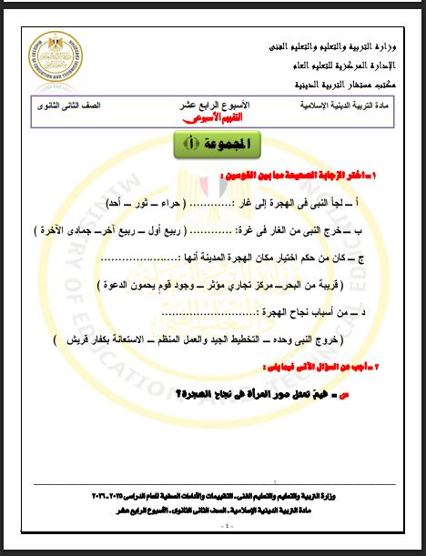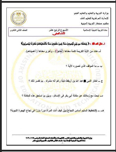 - مراجعات نهائيه امتحان التربية الاسلامية ثانية ثانوي