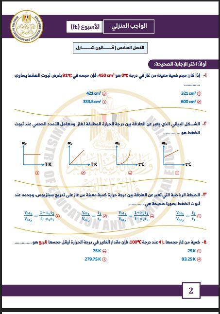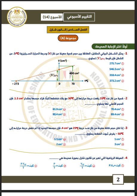 مراجعات نهائية.. أسئلة تقييم الأسبوع الـ 14 الفيزياء الصف الثاني الثانوي
