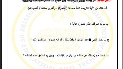 أسئلة تقييمات الأسبوع الـ 14 التربية الاسلامية الصف الثاني الثانوي