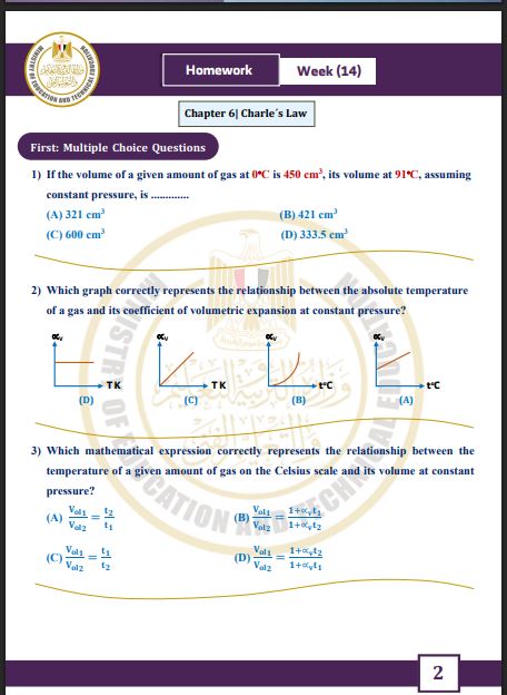 لطلاب الصف الثاني الثانوي.. أسئلة تقييمات الأسبوع الـ 14 الفيزياء لغات