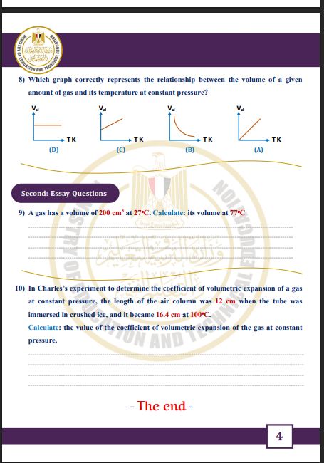 مراجعات نهائية.. أسئلة تقييم الأسبوع الـ 14 الفيزياء الصف الثاني الثانوي