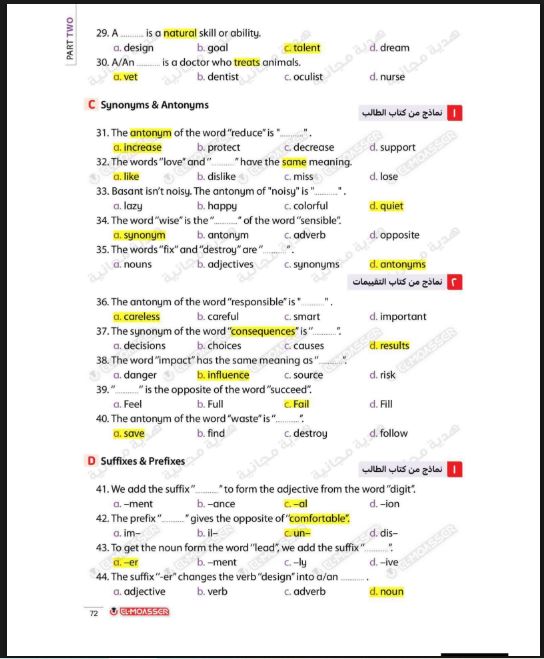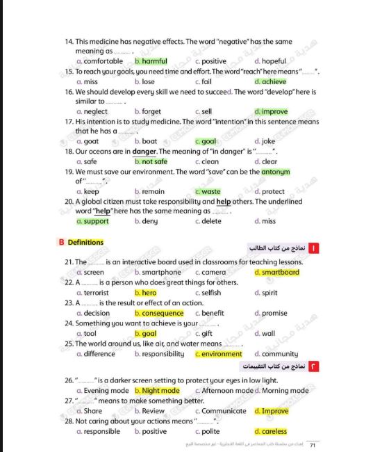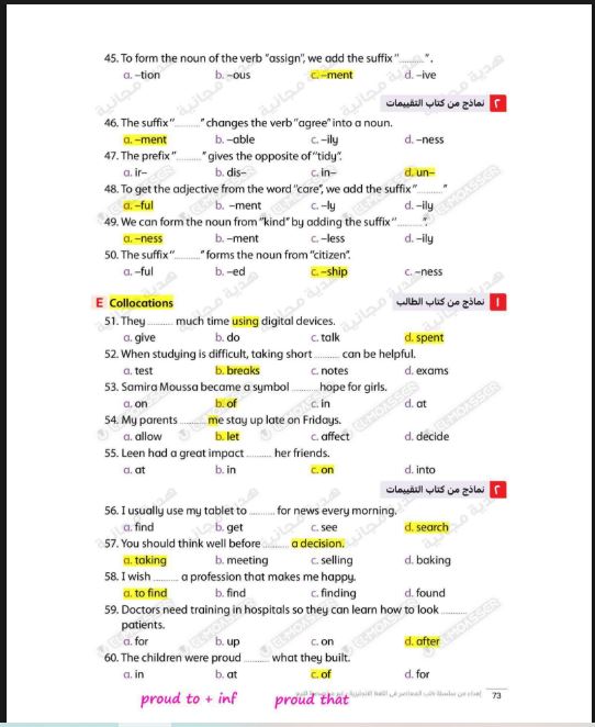 - اللغة الانجليزية مراجعات نهائية الصف الأول الاعدادي