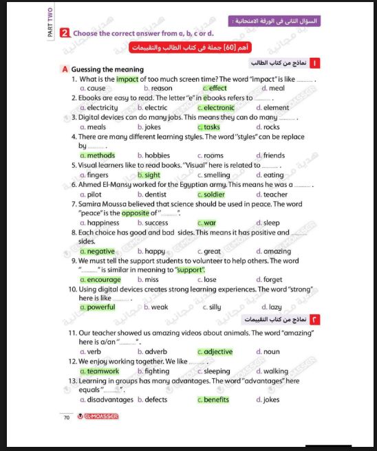مراجعات نهائية.. 60 سؤالا وإجابتها في اللغة الانجليزية لـ الصف الأول الإعدادي، تضمن لك التفوق، للعام الدراسي الجاري 2025-2026، في مراجعات نهائيه وتحميل 60 سؤالا وإجابتها في اللغة الانجليزية أولى اعدادي، تضمن لك التفوق، حيث يواصل موقع السبورة نشر مراجعة ليلة الامتحان من خلال تحميل 60 سؤالا وإجابتها في اللغة الانجليزية، من خلال مراجعات نهائيه، واستعراض جميع نظام أسئلة امتحانات مادة اللغة الانجليزية، وشرح مبسط، واستعراض بنك أسئلة وإجابتها في جميع أجزاء منهج العلوم أولى اعدادي، عن طريق نشر العديد من الامتحانات، لطلاب وطالبات الصف الأول الإعدادي، في مراجعات نهائيه، لن يخرج عنها امتحان آخر العام، ومن خلال متابعة مراجعات نهائيه أعدها خبراء المادة في وزارة التربية والتعليم.