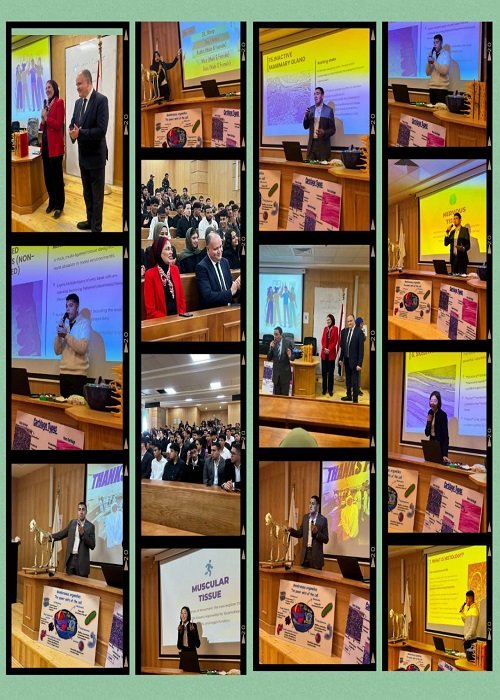 اعتمدت فعالية Histology Activity Day في جامعة القاهرة الأهلية على تقسيم الطلاب إلى فرق عمل متكاملة، حيث تولت كل مجموعة إعداد وتقديم عرض علمي متخصص حول جزء محدد من مقرر الهستولوجي، في تجربة تعليمية تعكس فلسفة التعليم التفاعلي التي تتبناها جامعة القاهرة الأهلية لربط الجوانب النظرية بالتطبيق العملي.
