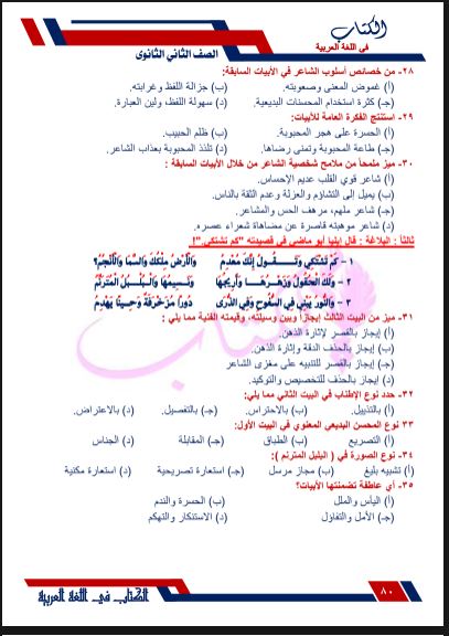 - مراجعات نهائيه امتحان اللغة العربية ثانية ثانوي