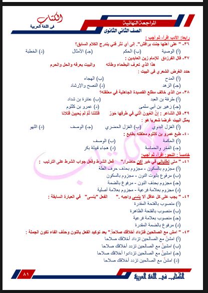 - مراجعة نهائية اللغة العربية الصف الثاني الثانوي