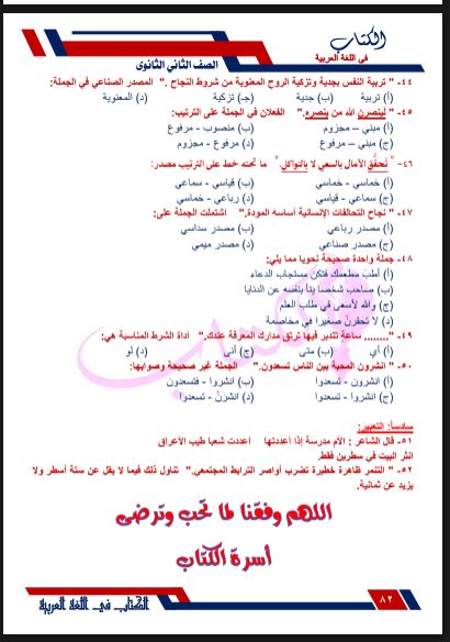 أقوى مراجعة في ليلة امتحان اللغة العربية الصف الثاني الثانوي