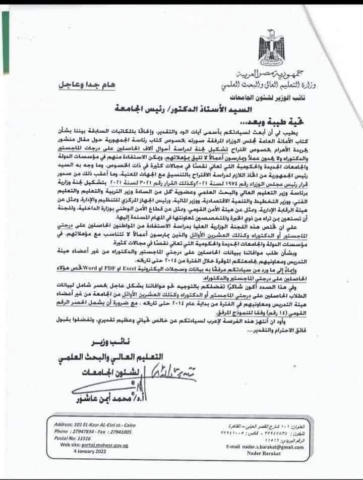 شهدت الأيام الماضية تزايدًا في مطالبات عدد كبير من الحاصلين على درجتي الماجستير والدكتوراه بسرعة تنفيذ القرار الجمهوري رقم 1974 لسنة 2021، الخاص بالاستفادة من الكفاءات العلمية داخل الجهاز الإداري للدولة، في ظل مرور أكثر من ثلاث سنوات على صدوره دون إعلان نتائج واضحة للتنفيذ