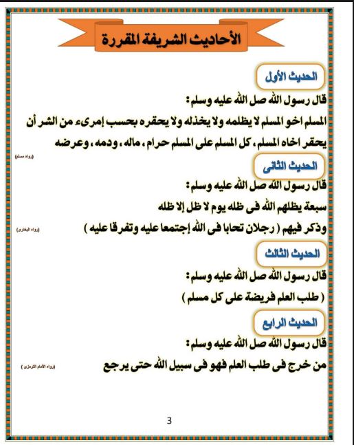 - التربية الدينية الاسلامية الصف الثالث الإعدادي