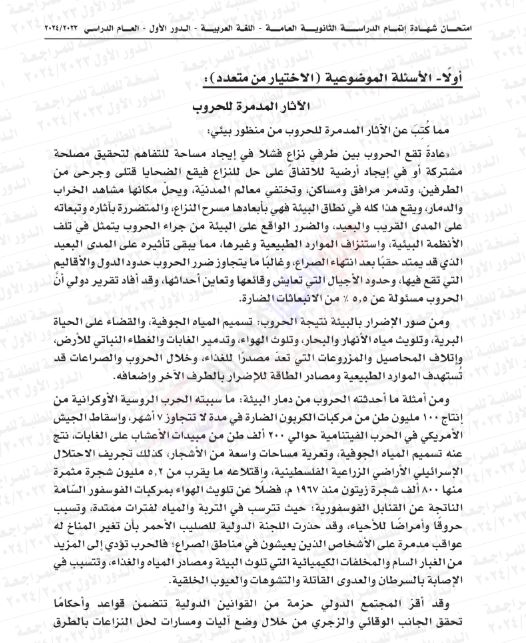 - مراجعات نهائيه امتحان عربي الثانوية العامة