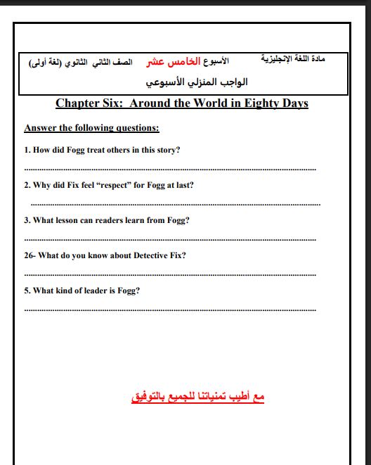 - التقييم الاسبوعي للصف الثاني الثانوي اللغة الإنجليزية