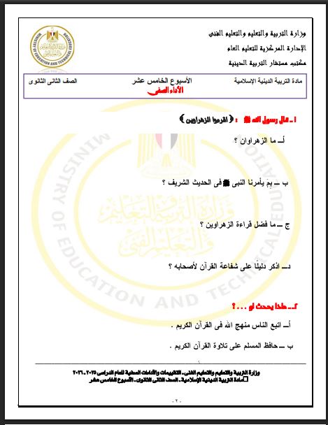 - مراجعات نهائيه امتحان التربية الاسلامية ثانية ثانوي