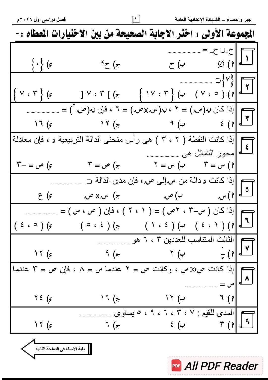 نموذج استرشادي في الجبر والاحصاء.. تحميل نماذج في مادة الرياضيات، تضمن لك دخول الامتحان وهو في جيبك، لطلاب وطالبات الصف الثالث الإعدادي، من خلال امتحانات الرياضيات، تضمن لك مراجعات نهائية في منهج الفصل الدراسي الأول، والتى تعد مرجعا أساسيا في مراجعات نهائيه، لمقرر المنهج الدراسي للعام الدراسي الجاري 2025-2026، أعدها خبراء المادة في وزارة التربية والتعليم، من أجل مراجعات نهائيه لطلاب الثالث الإعدادي.