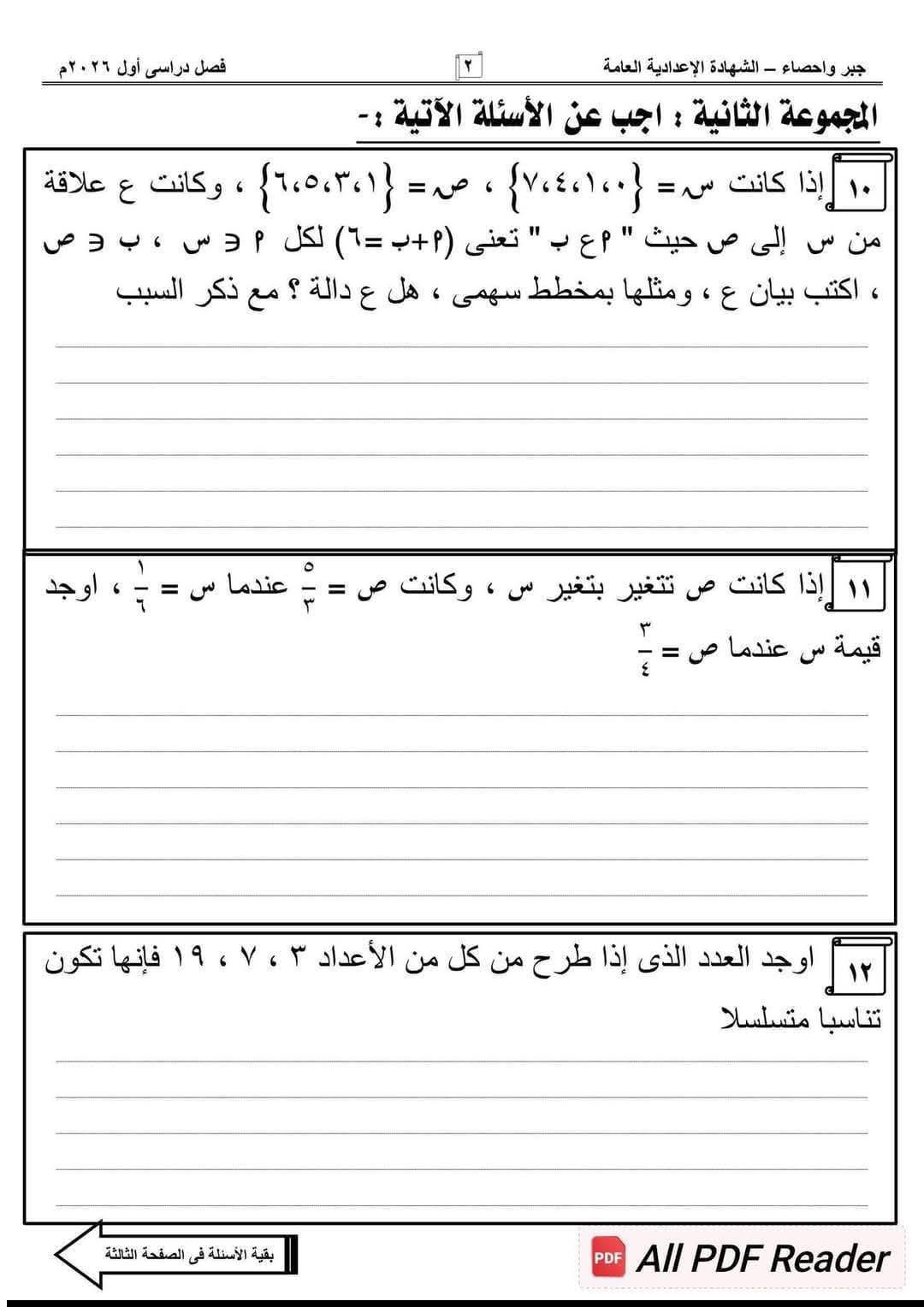 3 نماذج في الجبر والاحصاء لـ الشهادة الإعدادية 2026