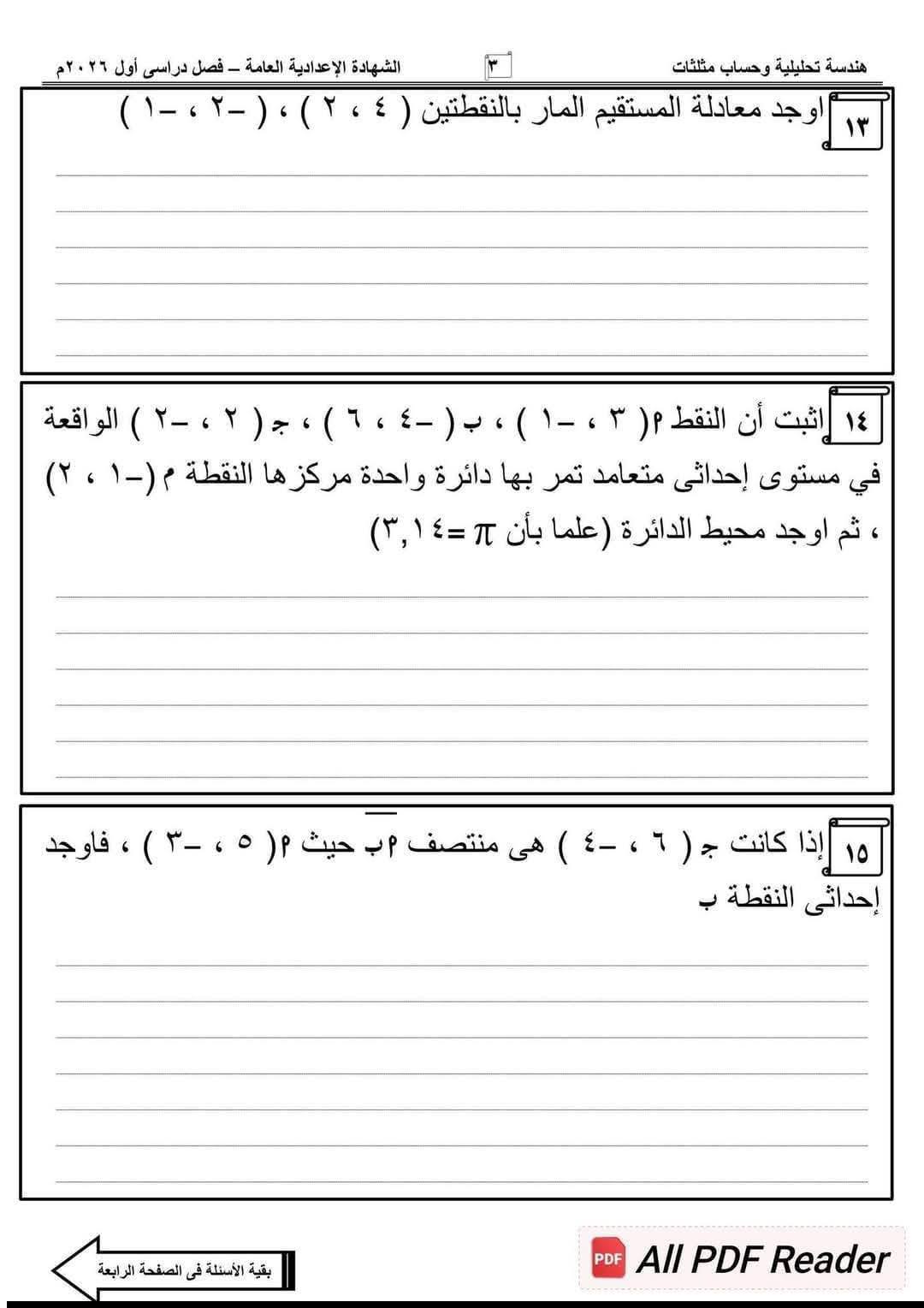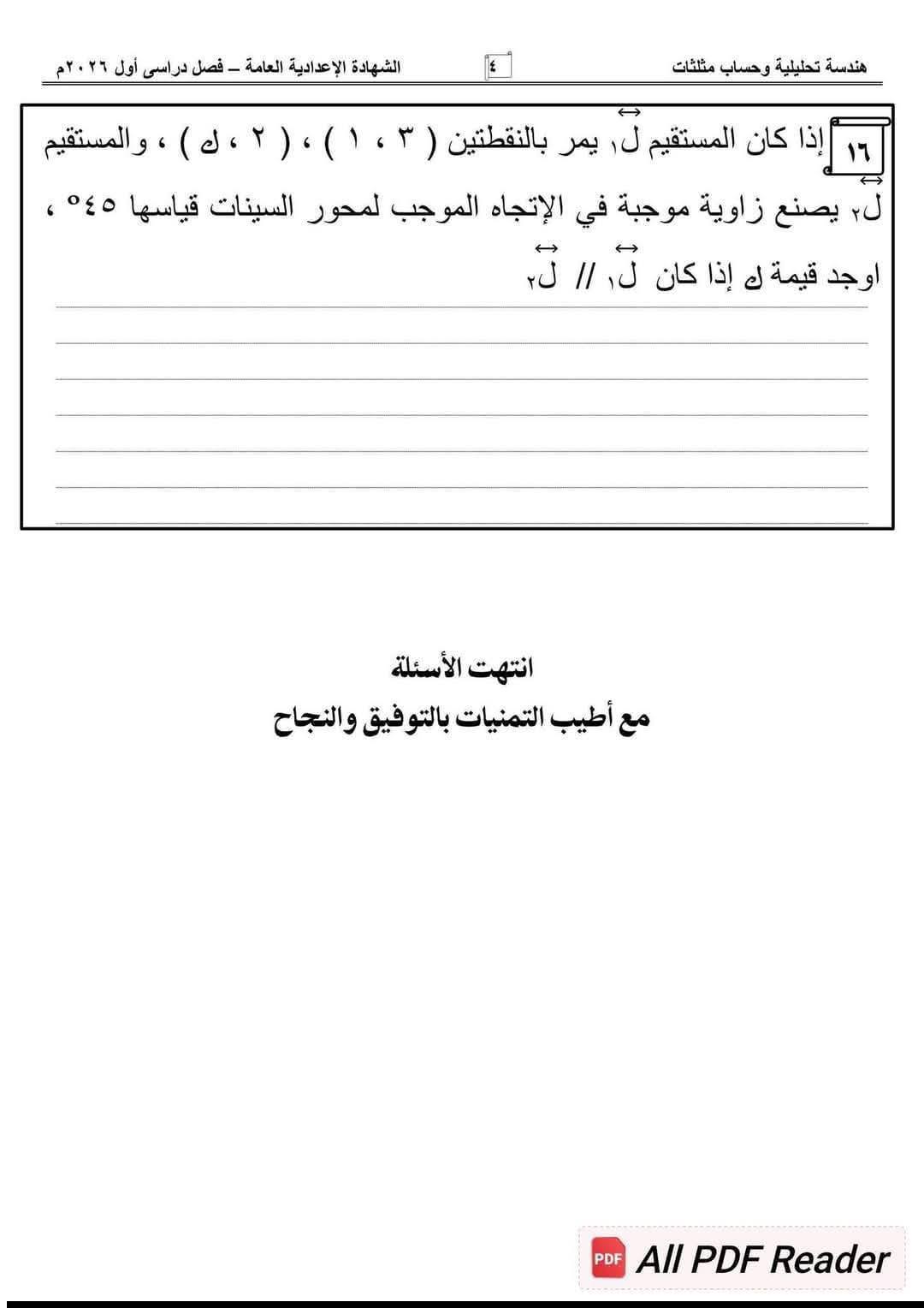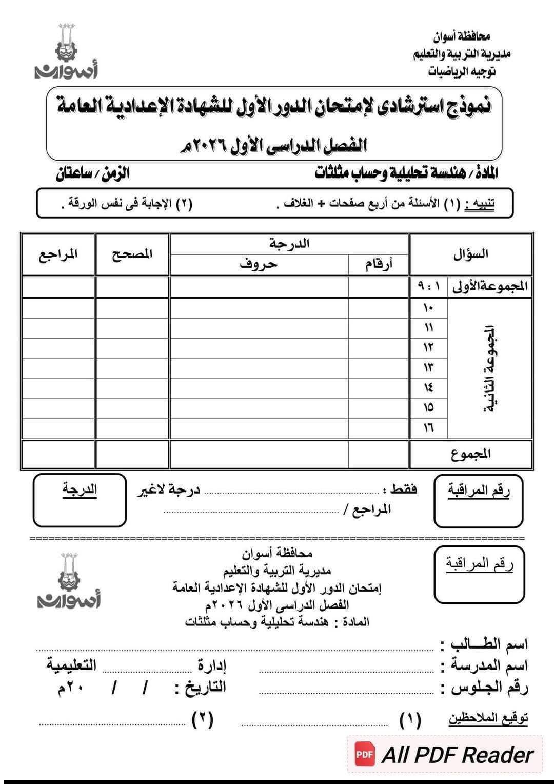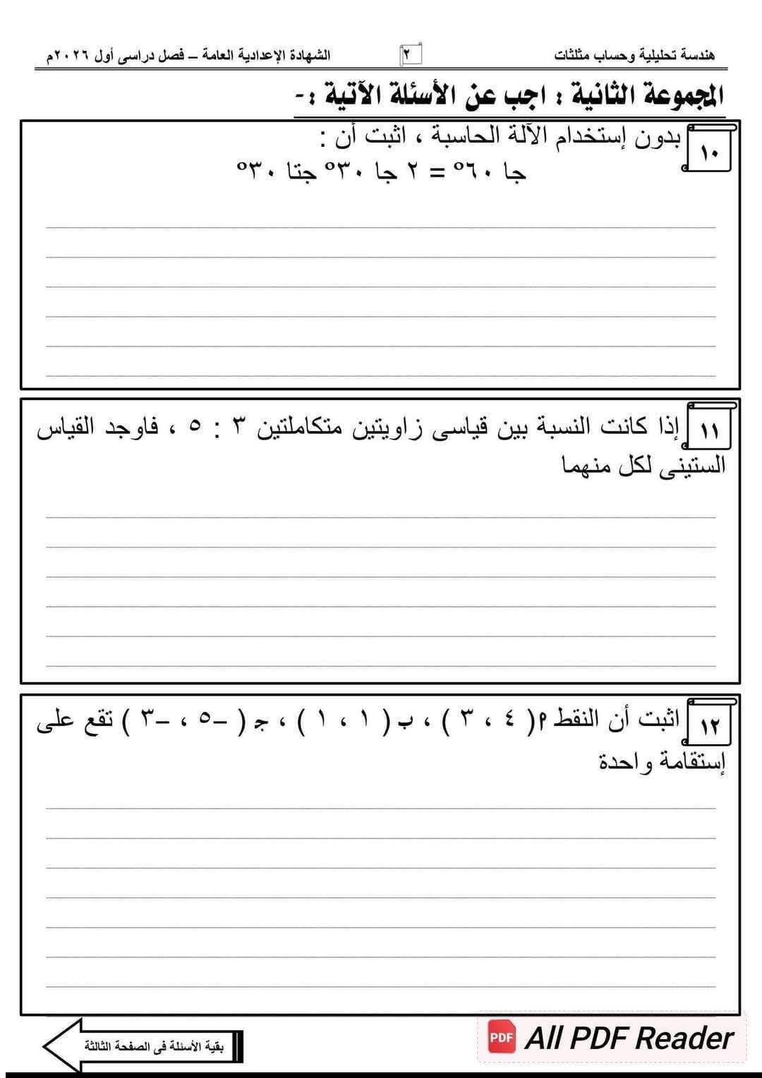 نموذج استرشادي في الهندسة لـ الشهادة الإعدادية 2026