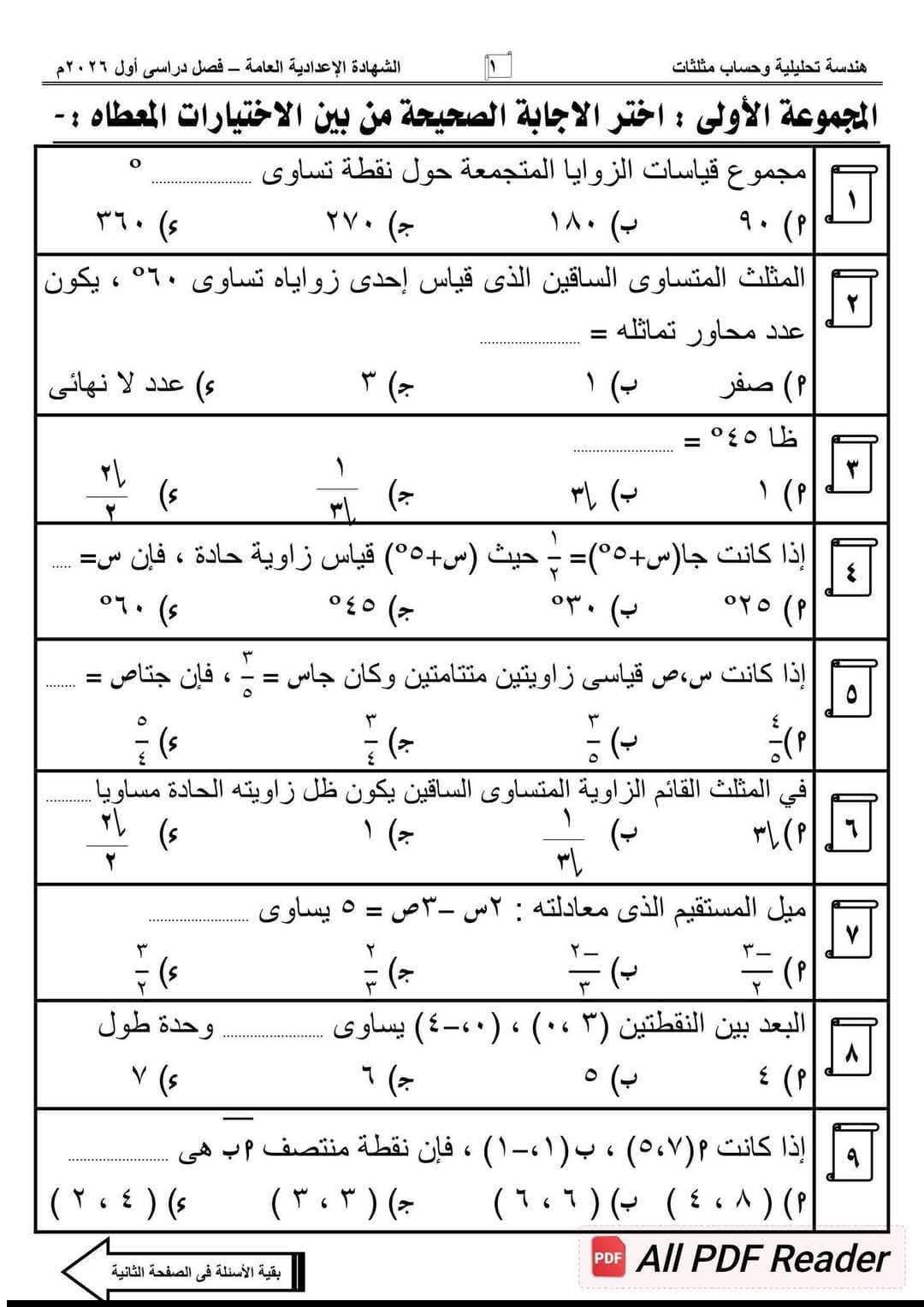 نموذج استرشادي في الهندسة.. تحميل نماذج في مادة الرياضيات، تضمن لك دخول الامتحان وهو في جيبك، لطلاب وطالبات الصف الثالث الإعدادي، من خلال امتحانات الرياضيات، تضمن لك مراجعات نهائية في منهج الفصل الدراسي الأول، والتى تعد مرجعا أساسيا في مراجعات نهائيه، لمقرر المنهج الدراسي للعام الدراسي الجاري 2025-2026، أعدها خبراء المادة في وزارة التربية والتعليم، من أجل مراجعات نهائيه لطلاب الثالث الإعدادي.