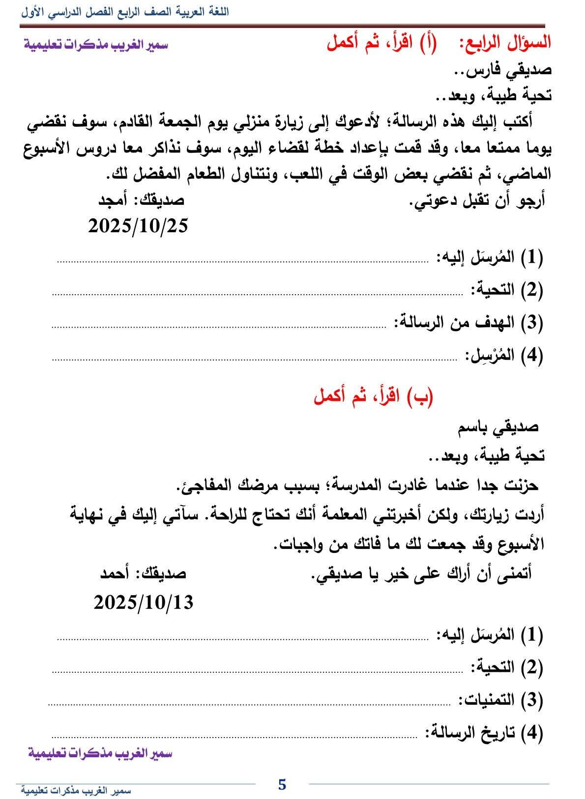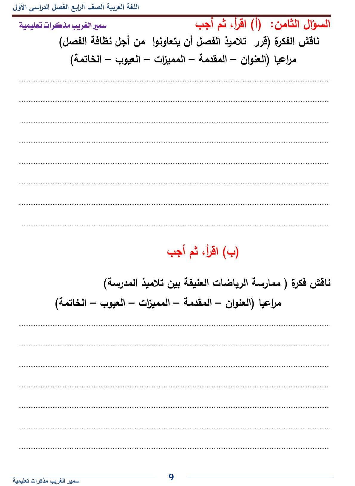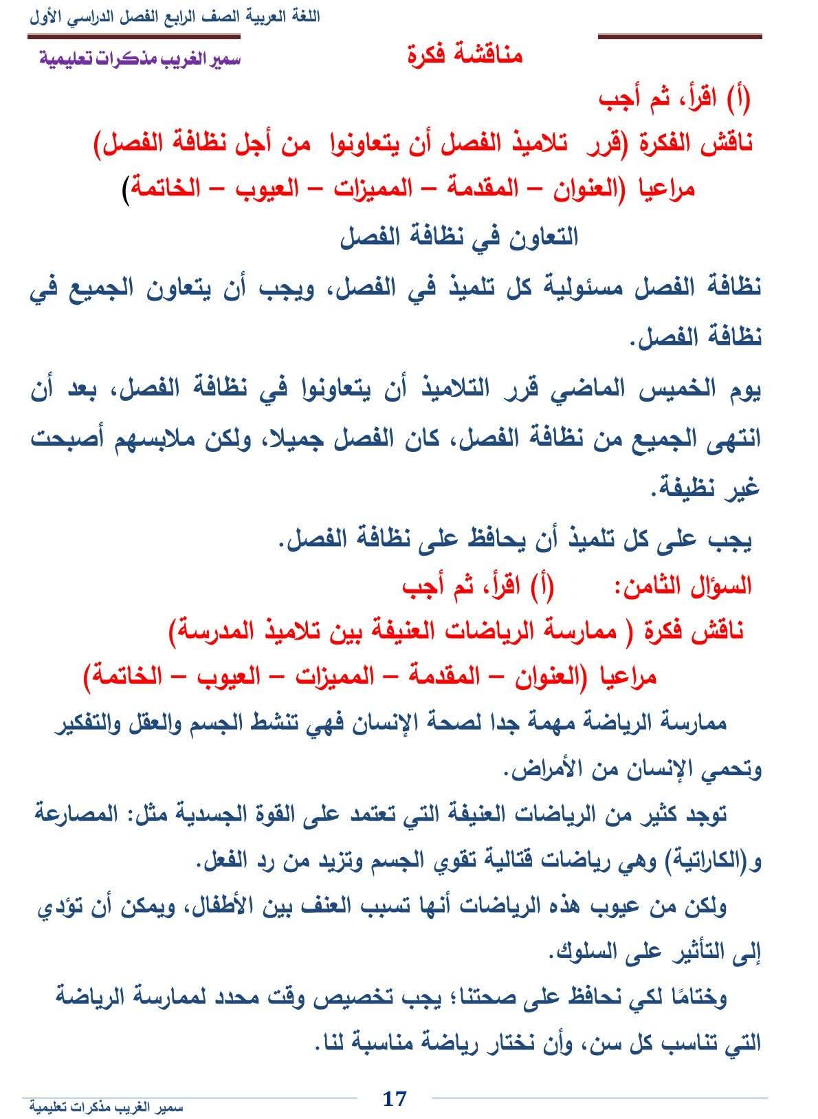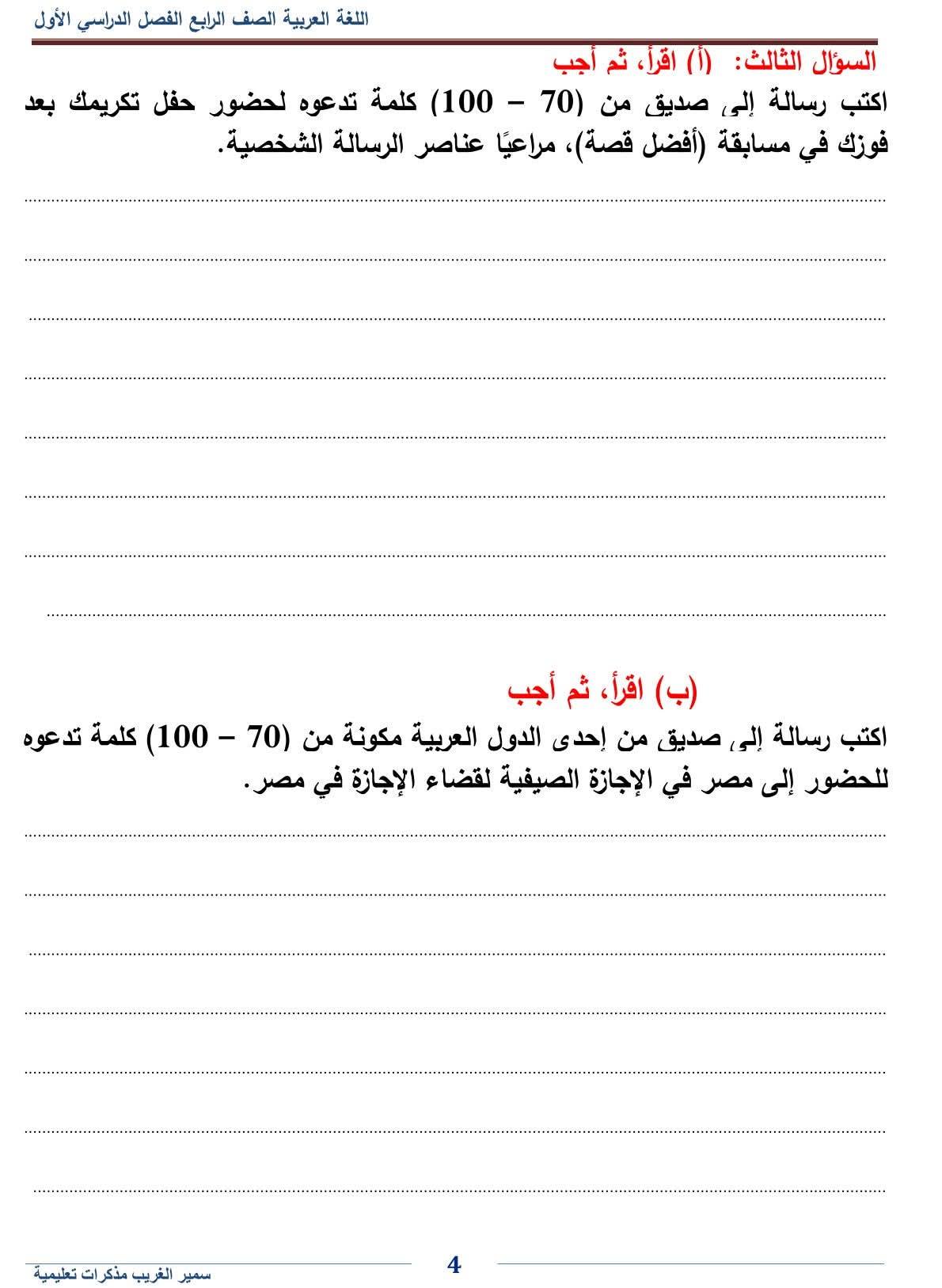 - اللغة العربية رابعة ابتدائي