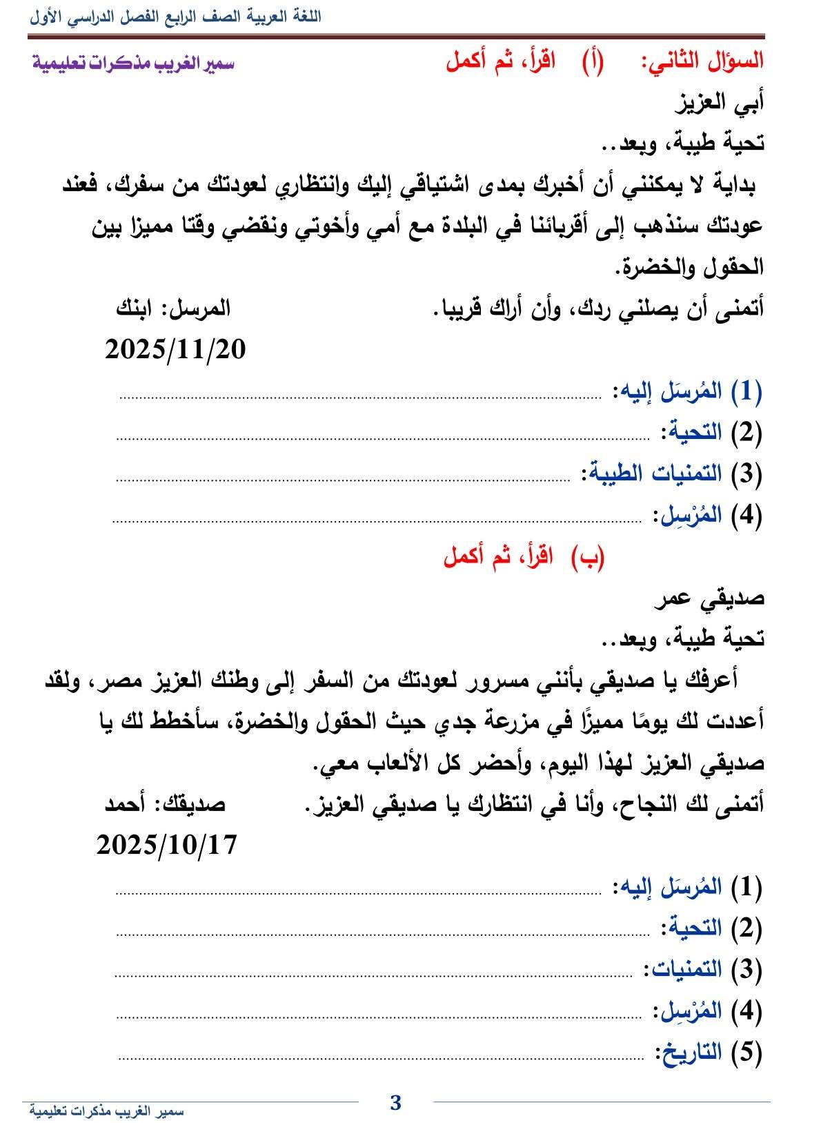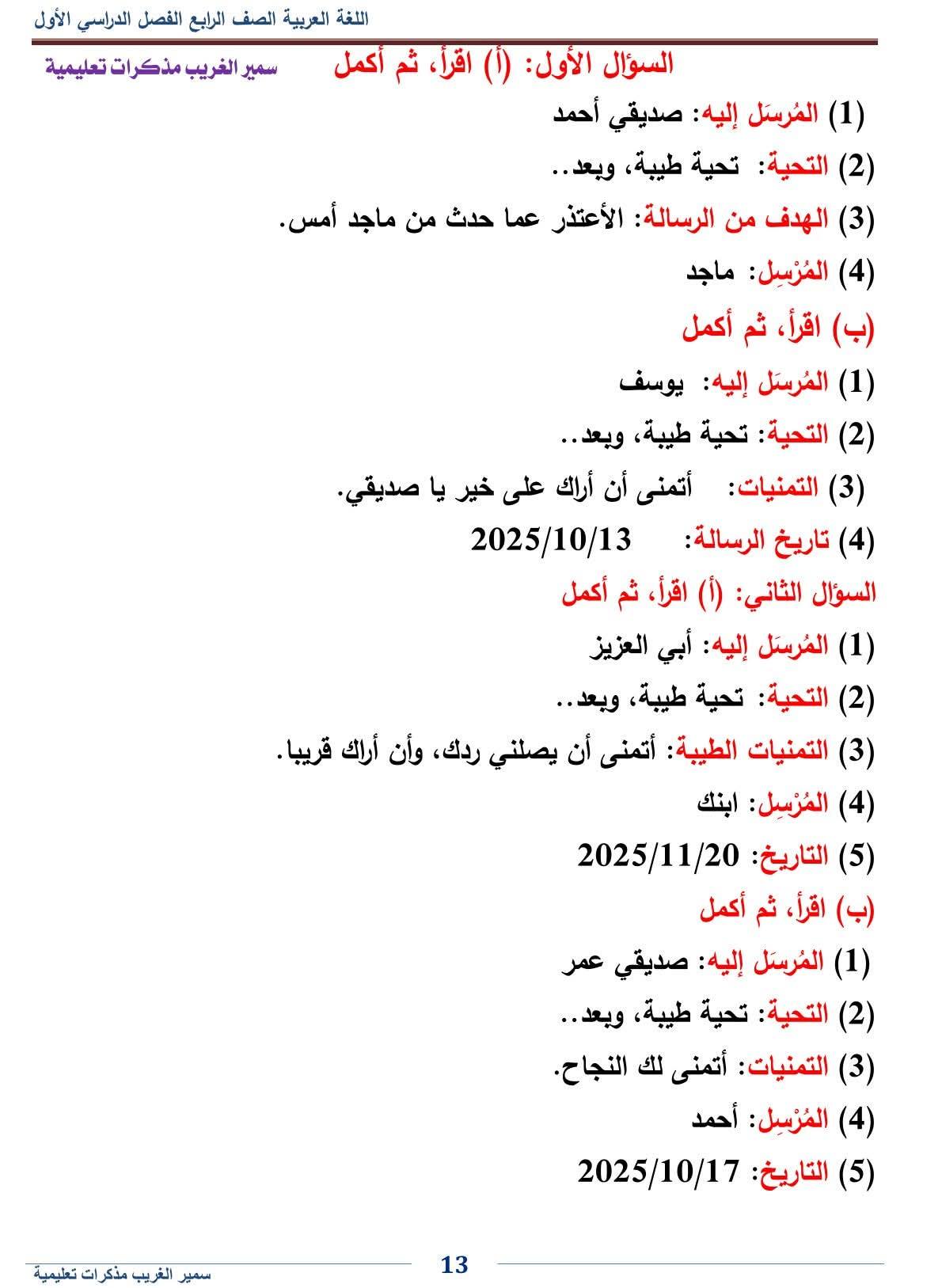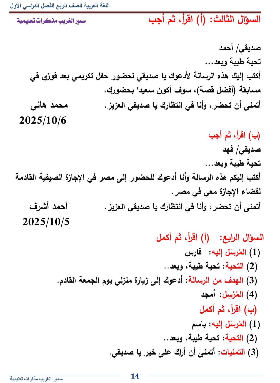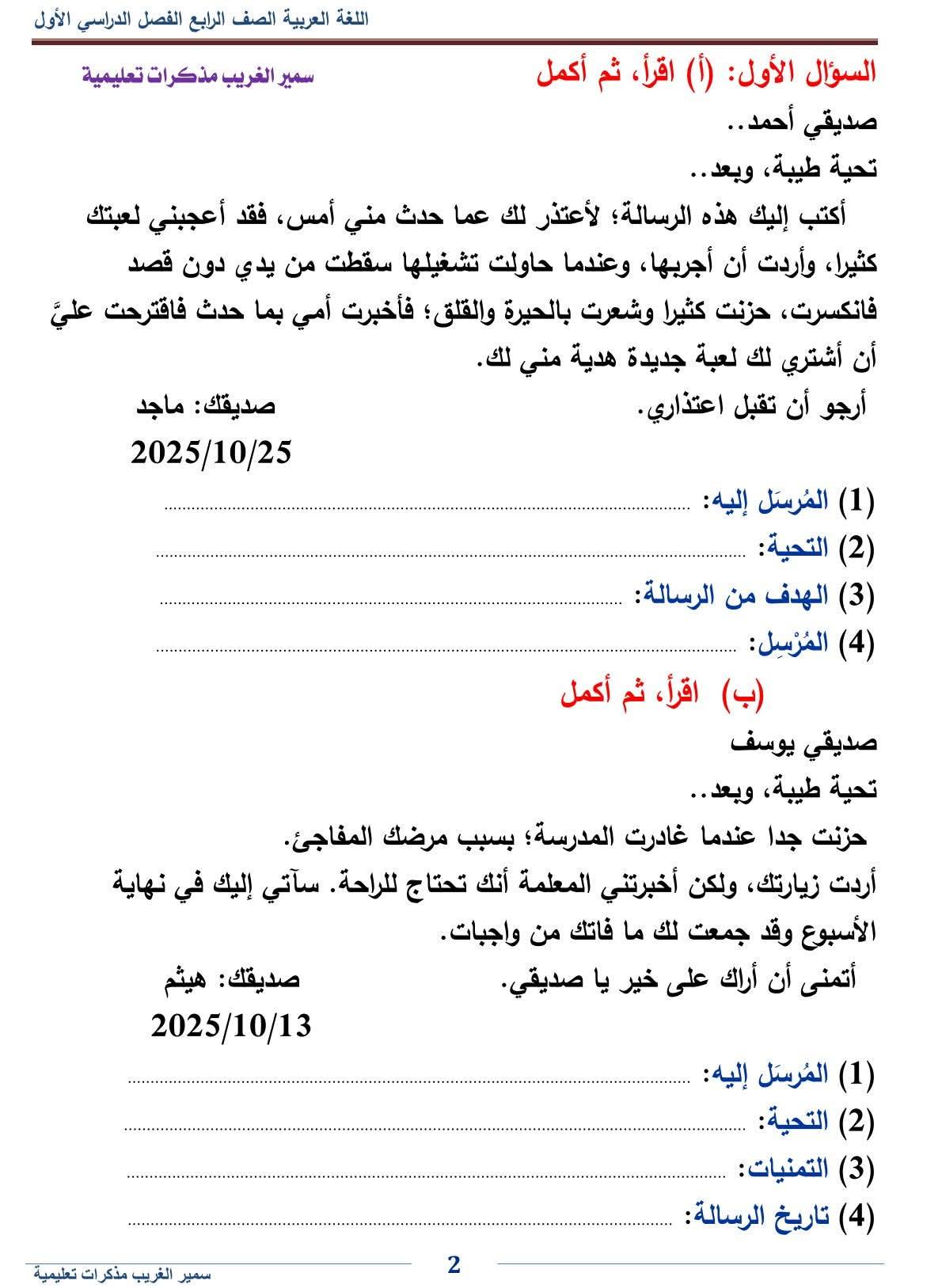 - اللغة العربية رابعة ابتدائي