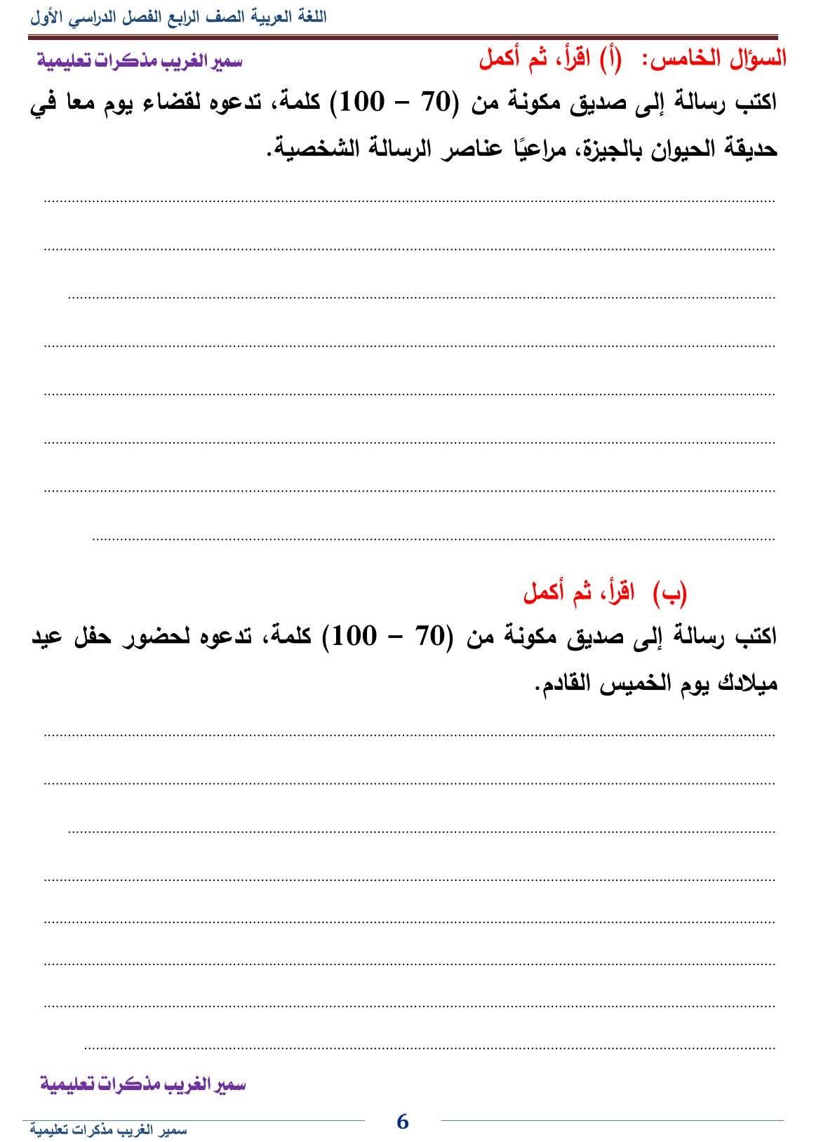 - مراجعات نهائيه امتحان اللغة العربية رابعة ابتدائي