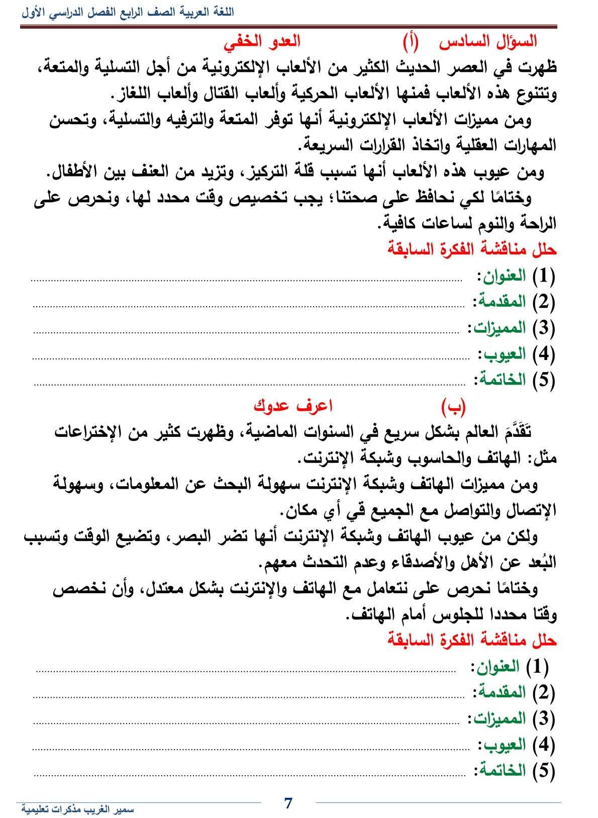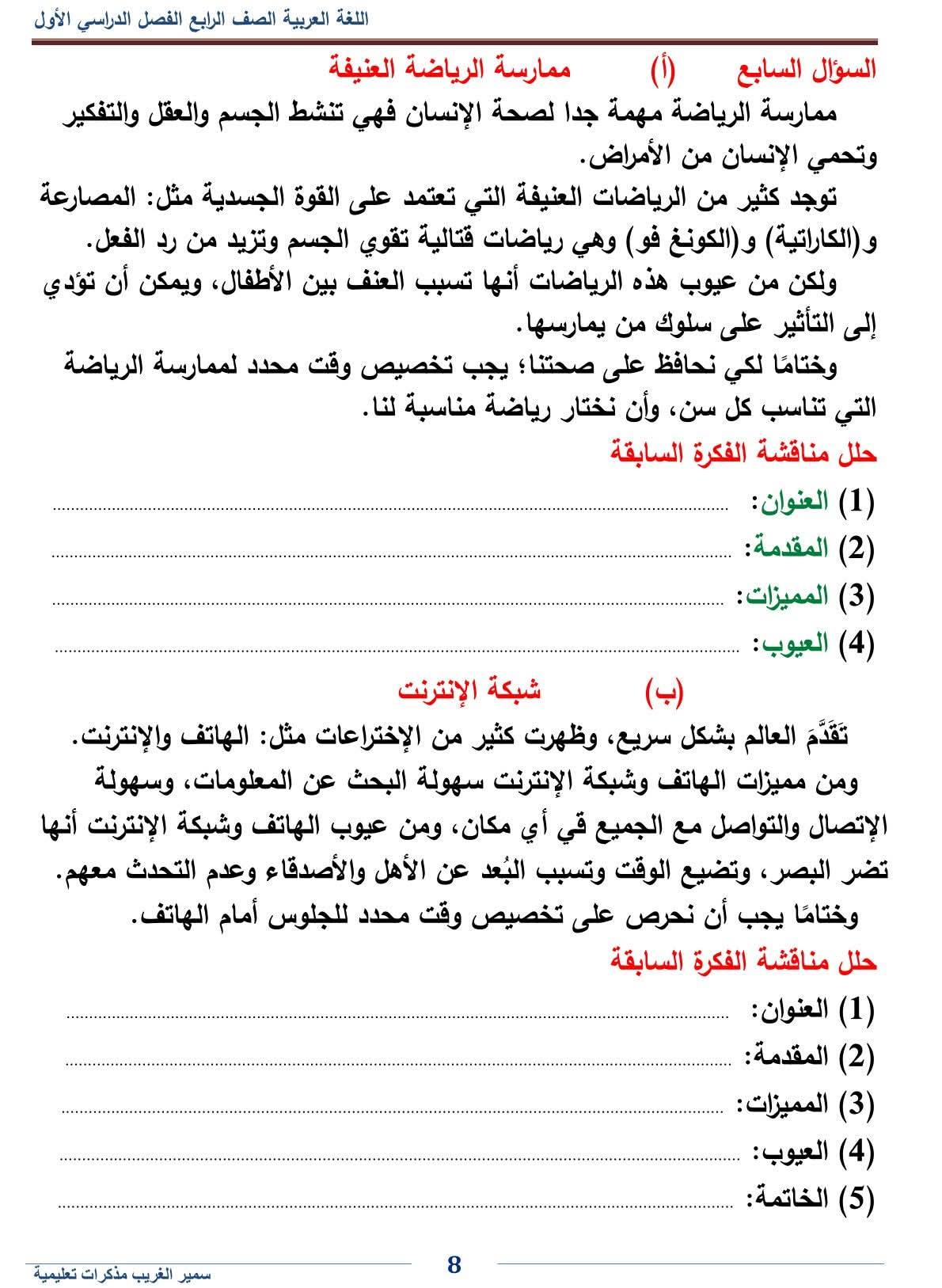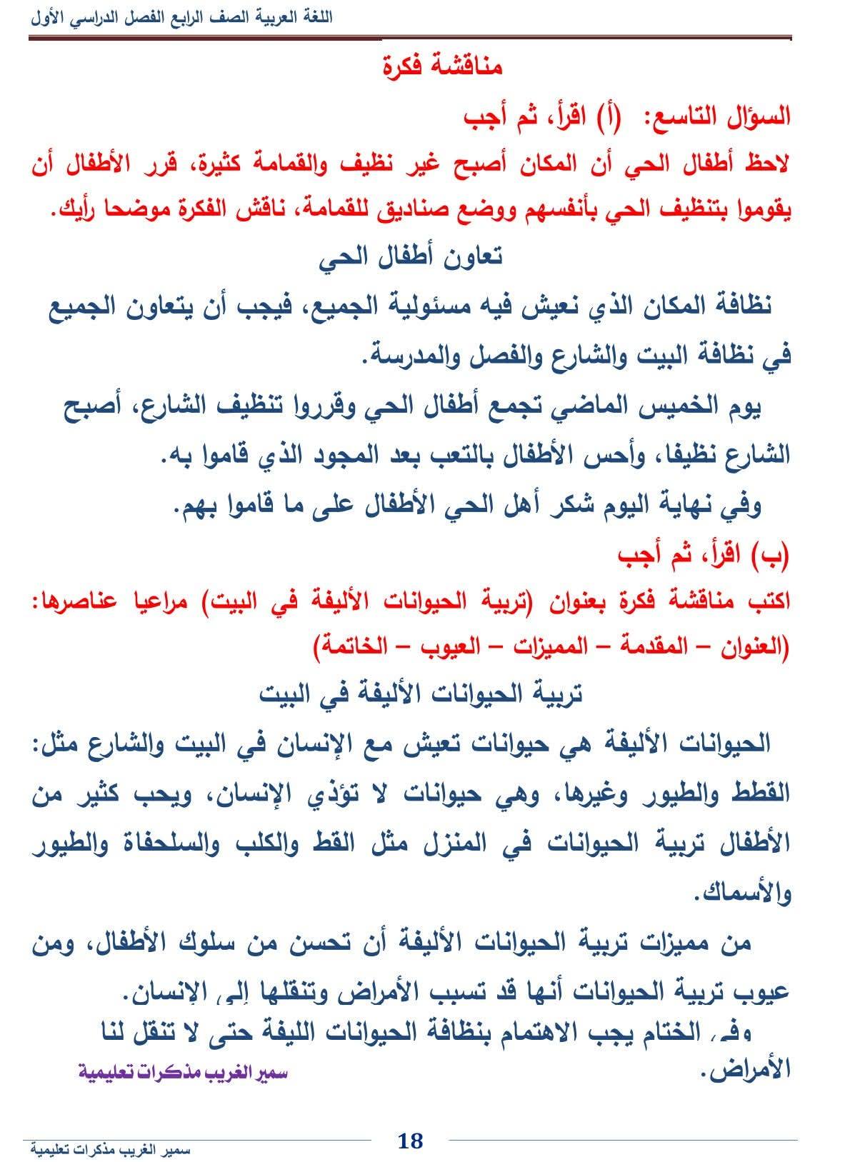 - اللغة العربية الصف الرابع الابتدائي